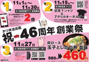 感謝の気持ちを込めまして、11月1日から、かつ丼吉兵衛46周年 創業祭を開催いたします!!