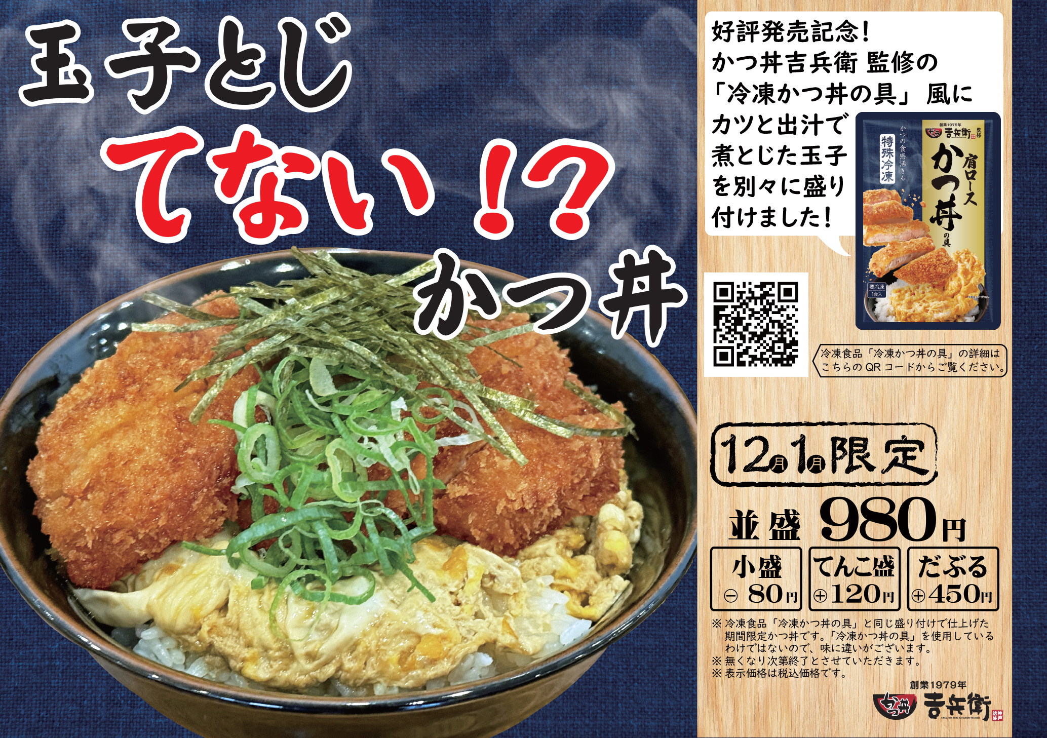 出汁を玉子で煮とじ、サクサクのカツとは別々に盛り付けた「玉子とじてないかつ丼」が12月1月の期間限定かつ丼となります✨