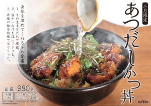 寒い季節に身体を温めてくれる、吉兵衛の冬かつ丼「あつだしかつ丼」が2月限定でやってまいりました!
