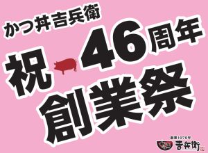 かつ丼吉兵衛は11月で46周年を迎えます。無事迎える事が出来ますのも、今まで支えてくださりましたお客様のおかげでございます。本当にありがとうございます! 感謝の気持ちを込めまして、11月1日から、かつ丼吉兵…続きを読む